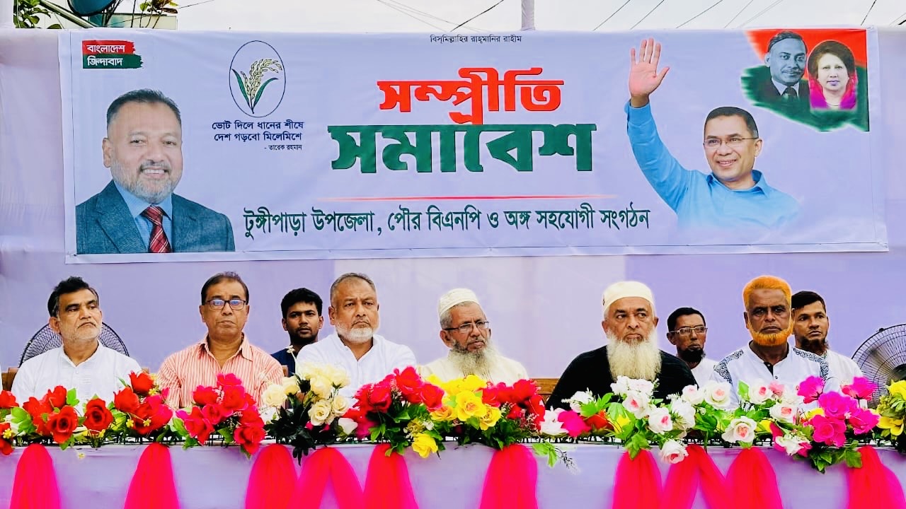 সম্প্রীতি সমাবেশে টুঙ্গিপাড়া উপজেলা বিএনপির সভাপতি শেখ সালাউদ্দিন আহমেদের সভাপতিত্বে ও পৌর বিএনপি’র সভাপতি এমদাদ মোল্লার সঞ্চালনায় বিশেষ অতিথির বক্তব্য রাখেন গোপালগঞ্জ জেলা বিএনপির সদস্য সচিব কাজী আবুল খায়ের।