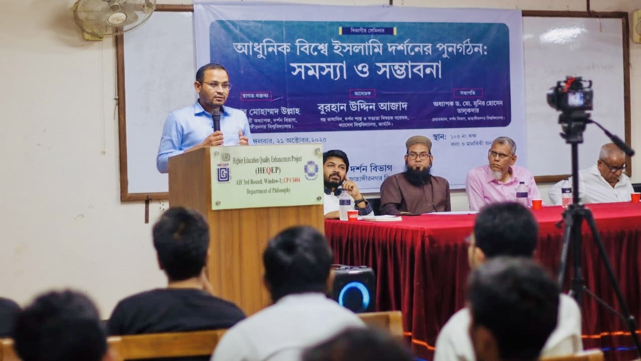 মঙ্গলবার (২১ অক্টোবর) দুপুর ২টায় কলা ও মানবিকী অনুষদের ১০৩ নং কক্ষে দর্শন বিভাগের চেয়ারম্যান অধ্যাপক মো. মুনির হোসেন তালুকদারের সভাপতিত্বে সেমিনারটি অনুষ্ঠিত হয়।
