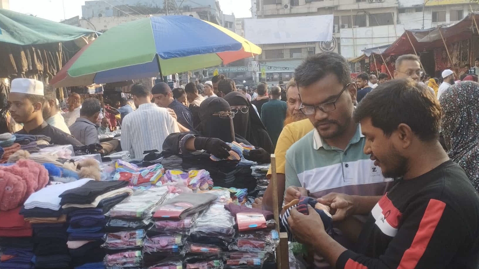 খুচরা বাজারেও একই চিত্র দেখা গেছে। শুক্রবার বায়তুল মোকাররম ও আশপাশের এলাকায় ছিল উপচে পড়া ভিড়। অনেক মার্কেট বন্ধ থাকা সত্ত্বেও ফুটপাতের দোকানগুলোতে ছিল ক্রেতাদের ভিড়। রঙিন শীতের পোশাকে নারী–পুরুষ–শিশু সবার উপস্থিতি ছিল চোখে পড়ার মতো।