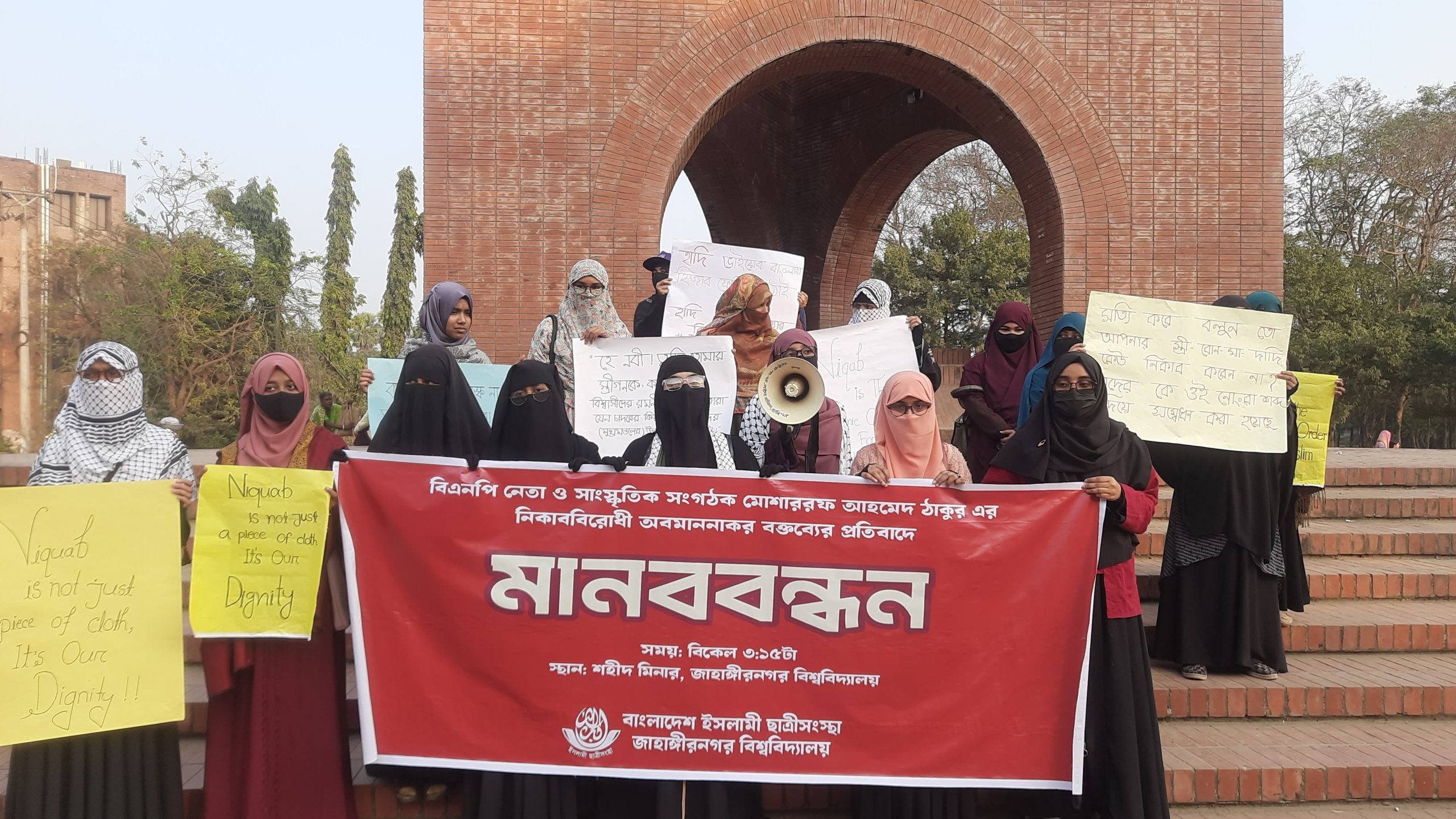 নিকাববিরোধী অবমাননাকর বক্তব্যের প্রতিবাদে জাবিতে ছাত্রীসংস্থার মানববন্ধন