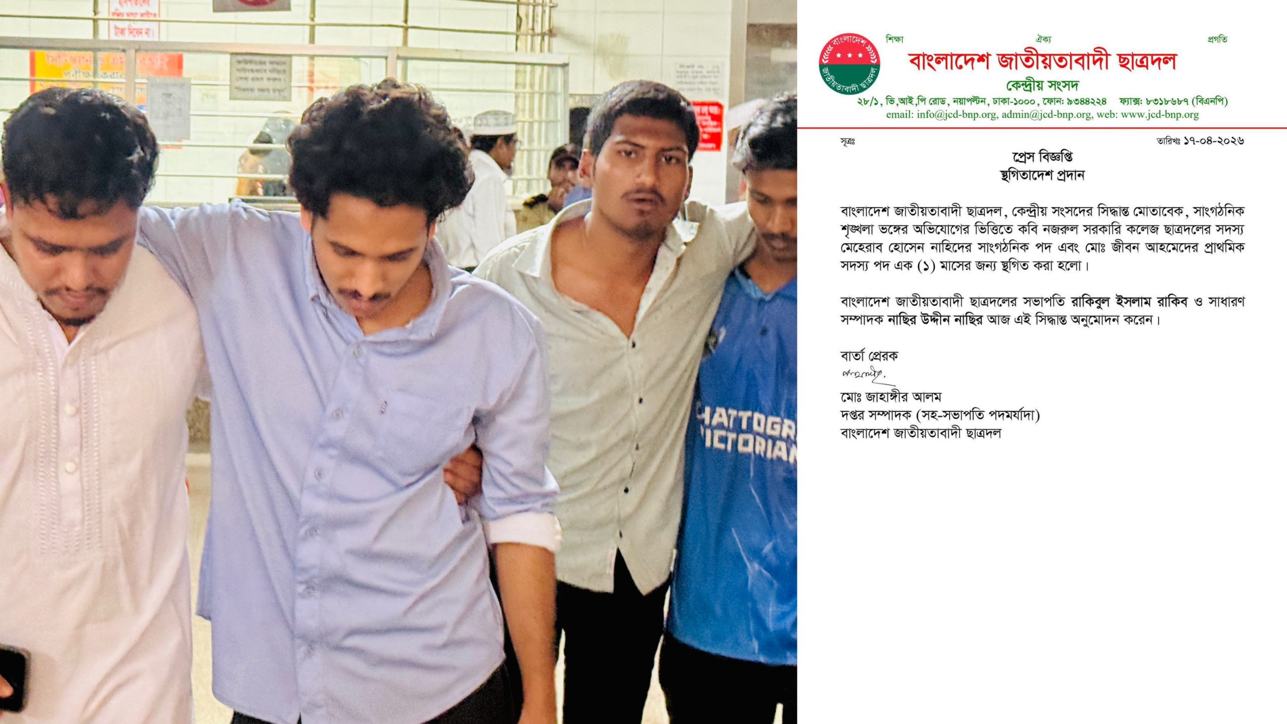 দুই সাংবাদিকের ওপর হামলার ঘটনায় কবি নজরুল কলেজ ছাত্রদলের দুই নেতার পদ স্থগিত