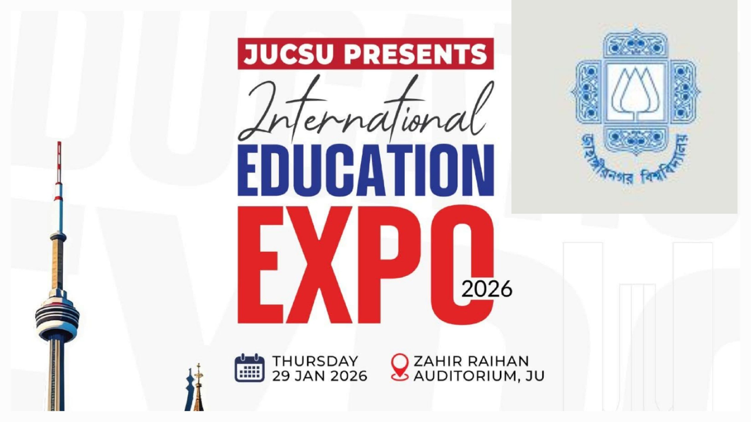 জাহাঙ্গীরনগর বিশ্ববিদ্যালয়ে (জাবি) শিক্ষার্থীদের বিদেশে উচ্চশিক্ষা বিষয়ে দিকনির্দেশনা দিতে জাকসুর উদ্যোগে আয়োজিত হতে যাচ্ছে ইন্টারন্যাশনাল এডুকেশন এক্সপো-২০২৬। আগামীকাল (২৯ জানুয়ারি)